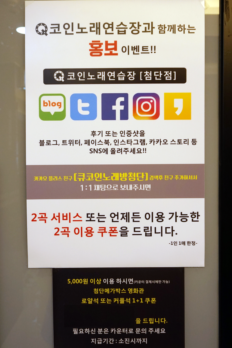 아드리노래방, 함 데리고 와서 봄 일반노래방은 기본 1시간에 2만원 넘는 곳이 많은데 ㅋㅋ 코인노래방은 곡당 6,000원~1시간에 500원 싼 데스~북면 무동에 있는 코인노래방 큐코인노래방 생긴지 꽤 됐는데 처음 온 고등학생 때는 참석할 줄 알고 노래방을 드나들었는데 응 꺄악~~