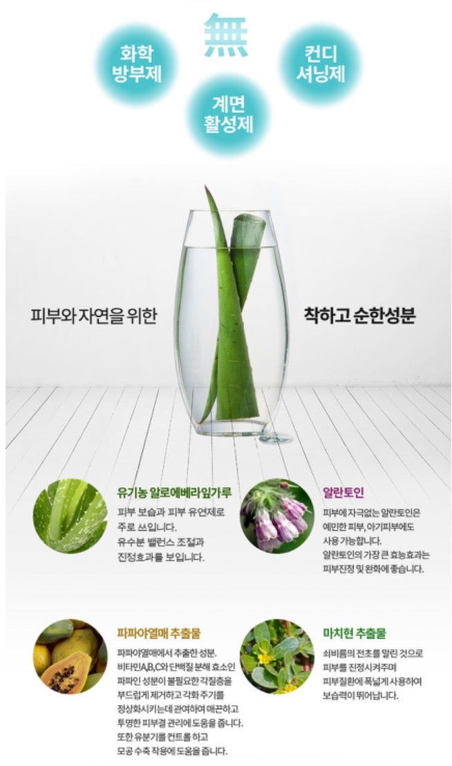 김종문수딩젤에는 생알로에베라가 들어있습니다. 즙이 무려 89.4%나 함유되어 있다고 합니다!!! 알로에베라는 수분감을 채워 보습을 잘 해준다고 합니다.빠르게 건조함을 잡아주는데 사용하기 좋은 편이에요.하지만 그뿐만 아니라 외부 자극으로부터 지친 결을 편안하게 해주고 튼튼하고 건강하게 해준다는 사실~!!