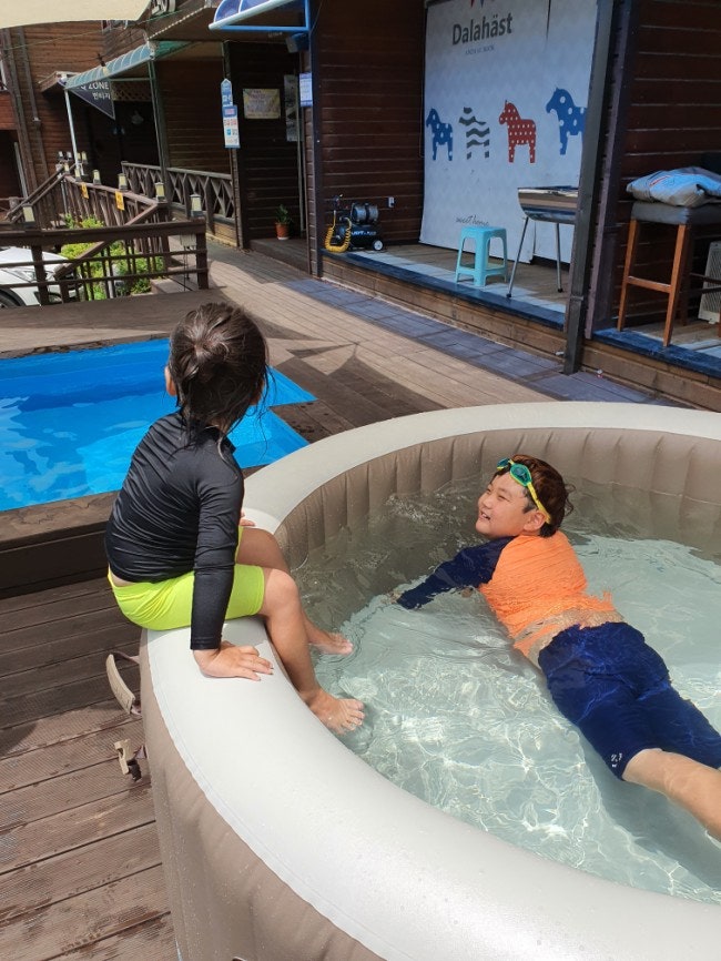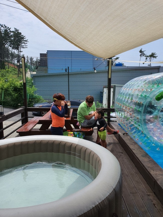 스카이 바이크와 비체 팰리스 홍보 포스터도 붙어 있습니다.객실 배치도도 있습니다.저희는 소망동.2층!주변 관광지와 배달 가능 업체도 적혀 있습니다.가격도 성수기, 주말, 평일로 다 적혀있었어요.1층 입구에 전자레인지와 휴지통이 있고 이건 층마다 전부 있습니다.소망동 입구에 셀프로 이용하실 수 있습니다.바비큐장이 실내로 되어 있는 곳이 2군데 있었던 것 같고 야외도 있었습니다.이런 거 다 쓰고 제자리에 갖다 놓으면 돼요.씻고 ㅋㅋ야외 바비큐장!제일 안쪽에 있습니다.저는 위치상 나쁘지 않았어요.길을 따라 쭉 내려와서 길 하나 건너면 바다예요.어른 발로 5분도 안 걸리고(3분이라는 것) 아이들을 데리고 레저 시트나 아이스 박스.같은 걸 들고 끙끙거리며 가면 5분은 걸리지 않을까 생각합니다. 사실 저는 걸음이 빠른 편이라 굉장히 빨리 도착합니다.꺄아 일단 숙소에 들어가면 아들이 좋아할 게임기! 일부러 게임기 룸을 골랐어요.게임기 온돌방. 꿀이에요 ㅋㅋㅋ화장실은 넓은 편이라 깨끗했습니다.얘는 왜 이래, 진짜.대체로 설거지도 잘 되어 있고 그릇도 깨끗했습니다.어차피 저는 펜션에서 요리하거나 하는 타입이 아니라서 식기 같은 거 별로 관심이 없어요.해봐 컵라면 ㅋㅋㅋ 그래도 펜션에서 바비큐 하시는 분들은 중요하니까.보니까 예뻐요.냉장고 냉동실 아주 건강해요.빨래건조대가 있고 테이블도 있습니다.이불이 3개씩 있었어요.드라이기 있어요.주의사항이 적혀있습니다.여름에는 수건을 더 가져다 주세요.저희는 4인기준이라 4장이 있고, 2박이라 4장 더 요구하셔도 무료인데.. 그렇지 않을경우 3장에 1천원! 수건은 냄새도 안나고 괜찮았어요.베란다에서 내려다본 모습입니다.산쪽은 고카트 타는곳이고아래쪽은 바다 쪽입니다.녹색 돔 지붕은 실내 바비큐장입니다.비도 와서 수영도 못하고 게임기에서 실수찾기 ㄱ저녁 식사하러 나오니까 인텍스풀도 나오네요.두근두근눈 깜짝할 사이에 일어났더니 물이 고여 있었어요!바다에 가서 놀고 샤워장에서 모래를 씻고 12시부터 놀기 시작했습니다.저희 빼고도 아이가 있는 룸이.많았는데 다들 바다로 갔어요.인텍스는 따뜻한 물에서 놀고 추우면 여기.우리 아이들은 3시간 넘게 전세내고 둘이서 놀았어요.앉아서개구리 ㅋㅋㅋ갓 태어난 아들데굴데굴 굴러보기도 하고동생이랑 물총놀이도 하고물이 차서 우왕좌왕하다가딸은 찬물에 들어갈 엄두도 못 내고 온수를 가지고 놀았어요.한번 안들어오는 사람 ㅋㅋㅋ저도 그냥 앉아있기는 그래서 발 담그고 ㅋㅋㅋ 처음에는 차갑게 하고 계속 담그고 있으면 너무 좋았어요.약간의 부분 ㅋㅋㅋㅋㅋㅋㅋㅋㅋ용기내서 들어간 동생 ㅎㅎㅎ 나중에 도와달라고 ㅋㅋㅋㅋ 엄마 도와줘 제발 ㅎㅎ제발 도와달라고 ㅋㅋㅋ 백신 맞은 지 (수요일 5시에 맞는) 며칠 안 돼서 맥주 마시는 건.좀 그렇고 그냥 애들 구경하면 왜 이렇게 심심해?ㅎㅎㅎ 역시 뭐든지 술이 빠지면 아쉬워아, 엄마 살려줘.제2탄 ㅋㅋㅋ조니….?어느새 둘이서 러브 송까지 걸어 놓고, 새가 모이게 새우깡을 입에 넣고 놀았습니다.3시간 이상 놀면서 언제까지 놀아? 갯벌이 난것 같은데···그리고 4시 60분까지.놀고. 아, 5시에 나오니? 그러면 그렇다고 wwwwww3시 반 이후에 다른 집 아이들이 우 몰려와서 우리는 마감했습니다. 수영장의 깊이는 그다지 깊은 없습니다.성인 여성의 무릎과 허벅지의 중간 정도?아들은 고추의 중간 정도?4세(37개월 딸)는 가슴, 목이나 오지 않을까 생각합니다.아기들은 튜브를 타야 할 것 같습니다.7세 초등생들은 그대로 놀아도 충분합니다ㅎㅎ물이 차갑게 느끼지만, 점점 둔해지자 미지근한 느낌입니다. 뜨겁고 노는 가치가 있어요ㅎㅎ우리는 오전 10시부터 바다에서 2시간 놀러 와서 숙소의 수영장에서 3시간 반 놀고, 또 바다에 가서 갯벌 체험을 좀 했어요.일석 이조의 펜션입니다.바다 앞에. 낚은 펜션도 굉장히 좋았지만, 바다 하나만 노는 것이 없었습니다. 장점과 단점이 있는 것 같아요 저는 만족합니다.룸 컨디션도 좋았고, 수건과 이불도 깨끗했고 수영장도 따뜻한 물 찬물이 두개나 있었고, 내뿜은 모기를 쫓음제와 전기 콘센트의 모기를 쫓음제가 두개 있고 선풍기, 에어컨 함께 있습니다.아이들이 오늘 하루 중 가장 즐거웠던 일을 펜션 수영장에서 논거!!라고 했습니다.^.^