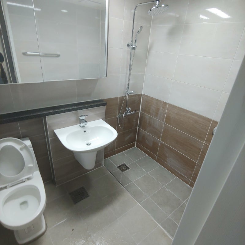 오늘 소개해드릴 작업 현장은 하남시 미사지구입니다.우성루보아 오피스텔 현장입니다.부동산 중개업소 사장의 소개로 공사 약속을 잡고 현장 방문하여 욕실 벽 타일 보수 공사를 진행했습니다.일단 현장 모습입니다.공사 시작 전의 모습을 찍지 않고 ···· 현장에서 레인 샤워기와 코너 선반을 분리한 상태의 모습부터 보여드리겠습니다.
